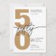 Celebrate a milestone in style with this modern and elegant 50th birthday invitation featuring a bold gold number 50 against a minimalist white background. The sleek design is accentuated by the black fifty script, creating a simple yet stylish look that is perfect for both men and women. This gender-neutral invitation is the perfect choice for anyone looking to mark this special occasion with a touch of sophistication. Make a statement with this sleek and chic design that captures the essence of a milestone birthday celebration.