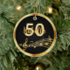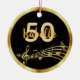 Black background with faux gold music notes for a 50th birthday party. With a faux gold frame. Templates for age and name. The name is written in a hand-lettered style script. Golden letters and number. For both him and her. Great as a birthday gift or a keepsake.