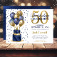 50th Birthday Navy Blue Balloon Cake Invitation