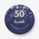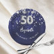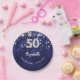 For a 50th birthday celebration. A navy blue background colour with faux silver stars. The blue colour is uneven. Add your name, text.