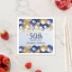 A stylish 50th birthday Party Napkin . Design features navy blue and gold balloons, Gold glittery starts and navy blue text all on a pale blue gradient background. A lovely party table addition for a 50th birthday party celebration. Easy to customize with your own details.