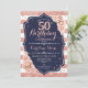 50th Birthday - Navy Rose Gold and White Stripes Invitation
