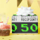 This geeky and fun birthday wrapping paper design features a large green retro computer game style number "50" on a black coloured background. It also features the birthday greeting message "Happy 50th Birthday,", and a custom name. Silly wrapping paper like this might be used to wrap 50th birthday gifts being given to a scientist, a computing historian, or somebody who really likes retro video gaming. [~Z0000403]