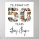 50th Birthday Number 50 23 Photo Collage Poster Print Sign. Celebrate a 50th birthday with this customisable photo sign featuring your custom title (shown with CELEBRATING 50 YEARS), a photo collage of 23 pictures in the shape of the number 50 and name and birthdate. Choose your own text font styles and all colours to create your own look or to coordinate with your party theme colours. Utilise as a birthday party welcome sign greeting party guests and honouring the guest of honour or transfer it to another product to give as a commemorative keepsake gift. The design can also be used to celebrate a 50th wedding anniversary. OPTIONS: The sample is shown in a 16x20" size on Value Paper (Matte); other standard and custom print sizes, paper quality and framing, Instant Digital Download file for printing locally or transferring the design to a foam board, banner, canvas or other product options are available on the ordering page. RESIZING TIP: Choose Custom Size for even borders by changing the height and width proportionately AFTER clicking the UNLOCK icon (looks like a chain link). ASSISTANCE: For help with design modification or personalisation, colour change, resizing or transferring the design, contact the designer BEFORE ORDERING via the Zazzle Chat MESSAGE tab or email makeitaboutyoustore@gmail.com.
