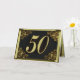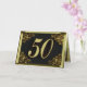 Custom greeting text, regal decorated with gold text and flourish ornate corners folded greeting card with black background for a 50th birthday. Alternatively can be used for an anniversary.