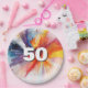 Contemporary abstract watercolor paint explosion for 50th birthday party.