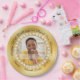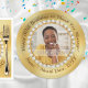 50th Birthday Paper Plates, Personalised or ANY OCCASION or YEAR. 3 Sizes, Round or Square. Gorgeous shades of Gold Glitter and Silver Glitter and Pearl Designs surround her, Photo Birthday Plates. You can DELETE the Photo Template to Expose a Stunning, Number Golden and Diamond "50" Design and Golden Diamond, beautifully custom printed on Paper Plates or TRANSFER to 1000 other 50th birthday party supplies, decorations, gifts and more.