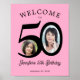 50th birthday party 2 photo black pink welcome poster