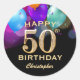 50th Birthday Party Black and Gold Balloons Classic Round Sticker