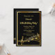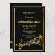 Let's party and dance! A trendy, modern 50th birthday party invitation card for both men and women. A classic black background, with faux gold frame and music notes, golden coloured letters. Templates for your party information. Back: Black colour faux gold music notes.