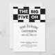 Invite your friends and family to a fun 50th birthday party with cool, modern, customisable invitations. The fiftieth milestone birthday celebration invite features a bold black and white chequered pattern at the top with the words "The Big Five Oh" in alternating white on black and black on white text. The bottom 2/3 of the flat card shows the words "50th Birthday Celebration" in black text on a white background. Customise the name, date, and party details in the sidebar. The back features a classic black and white chequered pattern.