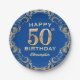 50th Birthday Party Blue and Gold Glitter Frame Paper Plate