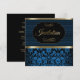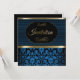 50th Birthday Party | Blue, Gold & Black Damask Invitation
