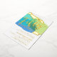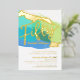 Bold abstract art brush strokes in aqua, green and blue with gold foil or your own foil colour photo template 50th birthday party invitation. Personalise this fifty script art milestone birthday invitation with your own birthday party event details, and a photos of your birthday girl on the reverse. Other years colours and matching items are available. © Original design by Sarah Trett for www.mylittleeden.com on Zazzle.