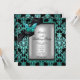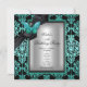 50th Birthday Party Damask Blue Teal Green Turquoise Silver Black Floral Butterfly Black womans Girl Elegant Classy Invitation Formal Use for any event invitation Customise to change or add details.