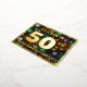 The front of this fun fiftieth birthday party/celebration foil invitation postcard design features a personalised name, a large number “50th”, the message “BIRTHDAY PARTY!”, and a border. The background of the front has a joyful, colourful pattern that resembles bursting celebratory fireworks. The back features personalised details about the event, such as the date, time, location, and any other information that may be important. Customisable invitations like these might be a fun way to invite guests to a birthday gathering being held in celebration of somebody’s 50th birthday. [~Z0000609]