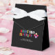 Surprise your guests with these 50th Birthday Party Colourful Thank You Favour Boxees. This fun design has a black customisable background and the text is "Happy 50th Birthday" in colourful primary rainbow colours and balloons. The text is "thank you for helping us celebrate" in white minimalist lettering. You can also add name if you wish.