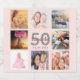 A bottle label for a 50th birthday party, celebrating her life with a collage of 8 of your photos. Personalise and add a name, age 50 and a date. Date of birth or the date of the party. Grey and dark rose gold coloured letters. A girly and feminine rose gold, blush pink coloured background.