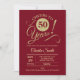 50th Birthday Party Invitation in dark red with faux glitter gold pattern. Features trendy typography script font. Simple modern design, perfect for an elegant party. Cheers to 50 years! Can be personalised into any age! Please message me if you need further customisation.