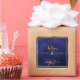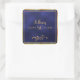A sticker for an elegant blue and gold themed 50th birthday party. Templates for a name, age, date of birth and date of the anniversary. Golden coloured letters. Blue background colour and a faux gold frame. The blue colour is uneven, like a fresco lime painted wall. With classic swirl decor.