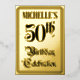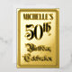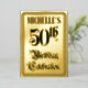 The front of this elaborate fiftieth birthday celebration foil invitation card design features the message “50th Birthday Celebration” in opulent script-style text. It also features a custom name. The back features personalised details about the event, such as the date, time, venue, and any other information that may be useful. Fancy, luxurious, customised invitations like these might be used to invite guests to a birthday party/celebration being held to celebrate somebody’s fiftieth birthday. [~Z0000596]
