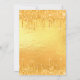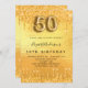 A modern, stylish and glamourous invitation for a 50th birthday party. A faux gold metallic looking background with faux glitter drips, paint dripping look. The name is written with a modern hand lettered style script. Personalise and add your party details. Number 50 is written with a balloon style font, script.