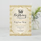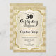 50th Birthday Party Invitation. Elegant design in gold. Features faux glitter gold stripes, stylish script font and confetti. Perfect for a glam birthday celebration.