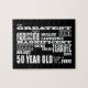 'The greatest most awesome excellent fantastic amazing magnificent super fabulous terrific superb brilliant Fifty year old in the world ....ever!' is a cool modern gift for fun loving Fifty year olds : presented in eye catching combination of always fashionable black and classic stylish white in an urban rock and roll attitute blast of fonts and more fonts.