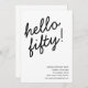This birthday invitation features bold black script lettering on a clean white background for a modern, understated look. Designed for a 50th birthday celebration, it works well for milestone parties, dinners, and elegant gatherings with friends and family. All text and event details are fully customizable to match your celebration.