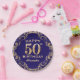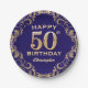 50th Birthday Party Navy Blue and Gold Glitter Paper Plate