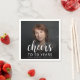This custom 50th birthday napkin features the guest of honour's personalised photo, name, and birthday, along with the word "Cheers" in elegant white calligraphy script. A dark screen helps make the text pop. A great way to celebrate someone who's turning fifty!