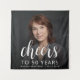 This custom 50th birthday tapestry features the guest of honour's personalised photo, name, and birthday, along with the word "Cheers" in elegant white calligraphy script. A dark screen helps make the text pop. A great way to celebrate someone who's turning fifty!