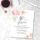 Elegant, chic and budget-friendly 50th birthday party invitation featuring "50 & Fabulous" in stylish script and delicate pink and coral floral watercolor bouquets with gold accents. You can personalise with her name and the party details.
