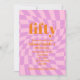 This minimalist retro design features a purple and mauve distressed checked background with orange text on the card front.