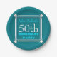 Vintage and retro style for this customisable 50th birthday Paper plates with white frame. You can easily change colour background and text (font, colour, size and position) by clicking the customise button.
