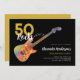 50th birthday party invitations with 50 Rocks cool colourful electric guitar with fire flame pick guard guitar art and musical notes illustration with personalised black and gold modern calligraphy typography. This easy to use template creates the perfect personalised invitation to celebrate fifty in rock n roll style and is ideal for a guitarist, musician and music lovers. Any guitar player will tell you that you can never have too many guitars. This cool modern musical instrument design celebrates the music energy of this wonderful musical instrument and is the perfect way to rock a fiftieth birthday celebration. Original artwork by artist Catherine Sweetman
