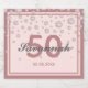 An elegant, glamourous and girly 50th birthday label. A rose gold, blush pink coloured background with faux golden diamond sprinkle and a dark rose gold frame. Personalise and add a name, age 50 and a date. Date of birth or the date of the party. Dark rose gold and grey coloured text. The name is written with a hand lettered style script.
