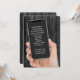 Cellphone in a hand on dark grey rustic wood for a 50th birthday party.