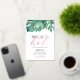 Tropical yet elegant personalised calligraphy invitations frames your birthday party details with a border of simple gold confetti and tropical monstera palm leaves over a crisp white background. Your event details are set in an simple sans serif and hand lettered script type in real gold foil. Perfect for a 50 and fabulous birthday party. To see more elegant foil stamped tropic like it's hot themes by Victoria Grigaliunas visit www.zazzle.com/dotellabelle