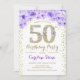 50th Birthday Party - White Gold Purple Invitation