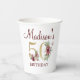 50th Birthday Personalised Burgundy Gold Floral Paper Cups