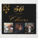 A bottle label for a glamorous 50th birthday party. Personalize and add 3 of your own photos, a name, age 50 and a date. Date of birth or the date of the party. Golden colored letters. The word: Cheers, in faux gold written with a trendy hand lettered style script. Elegant, classic chic black background color, decorated with faux gold party streamers.