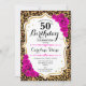 Elegant pink white design with faux glitter gold. Features leopard cheetah animal print, script font and roses. Perfect for an elegant birthday party. Can be personalised into any year! Message me if you need further customisation.