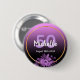 Glamourous button for a 50th birthday with elegant and modern black and pink, purple gradient, ombre backdrop. With a faux gold frame, and ultra violet and purple coloured watercolored flowers. Templates for name, age and date, white and purple coloured letters. Perfect as a keepsake or as a save the date reminder for your guests.