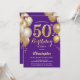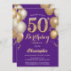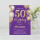 50th Birthday Purple and Gold Balloons Confetti Invitation