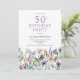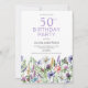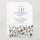 Get ready for the party with this pretty 50th birthday purple floral invitation. Easy to change the text. Watercolor wildflower botanical.