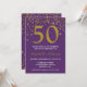 50th Birthday Purple Gold Confetti Dot Retro Chic Invitation