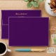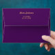 Outside: purple background colour. Back: template for a name and address. Golden text. Inside: purple background and faux gold text written with a trendy hand-lettered style script: hello fifty. With golden dots as decor. A simple and trendy envelope for your 50th birthday party invitations, save the dates or thank you cards,