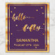 Elegant and modern for a 50th birthday party. Purple backdrop and faux gold text written with a trendy hand-lettered style script: hello fifty with golden dots as decor. Templates for name and date, golden letters. You can change the background colour to match your theme. Click customise and then "select a background colour" on your right.
