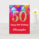50th Birthday Red and Gold Colourful Balloons Birthday Card. For further customisation, please click the "Customise it" button and use our design tool to modify this template.